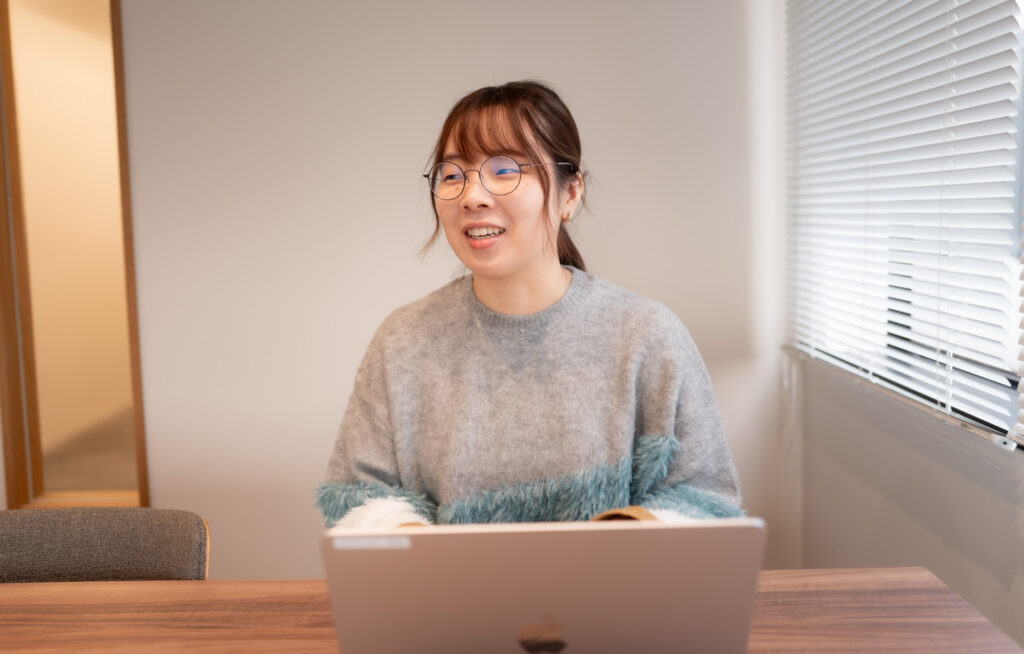 また、私自身がこれからどんなキャリアを積んでいきたいのかについても丁寧にヒアリングしていただき、デザインにも挑戦したいという思いに対して、現状のスキルを確認したうえでフィードバックまでしてくれました。やりたいことにきちんと向き合ってくれる印象を持ちましたし、制度面や働き方についても細かく説明してもらえたことで、安心して挑戦できると感じたことが入社の決め手でしたね。